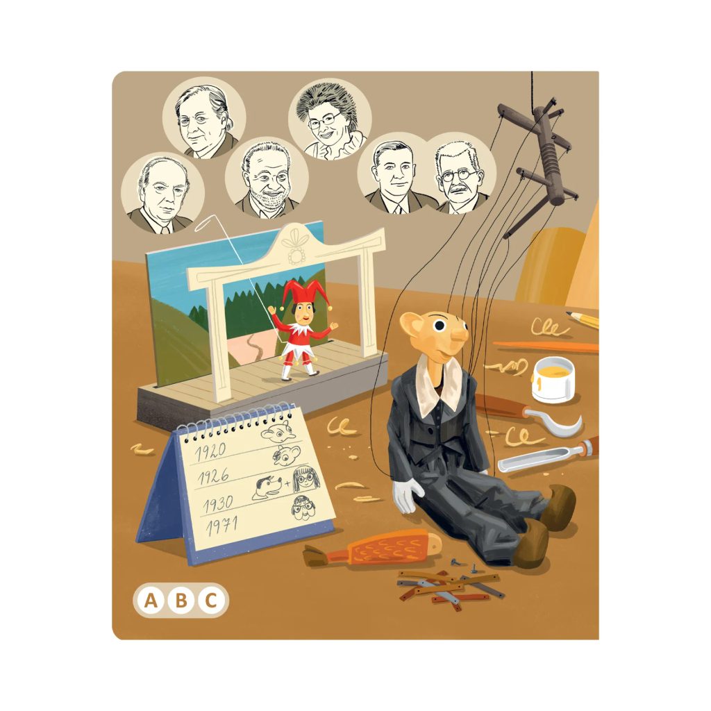 V této knize vás nejen provedou světem divadla, také je uvidíte a uslyšíte bloudit egyptskými pyramidami, řešit detektivní záhadu, cestovat vesmírem, zpívat v opeře, a nakonec také slavit Hurvínkovy sté narozeniny.