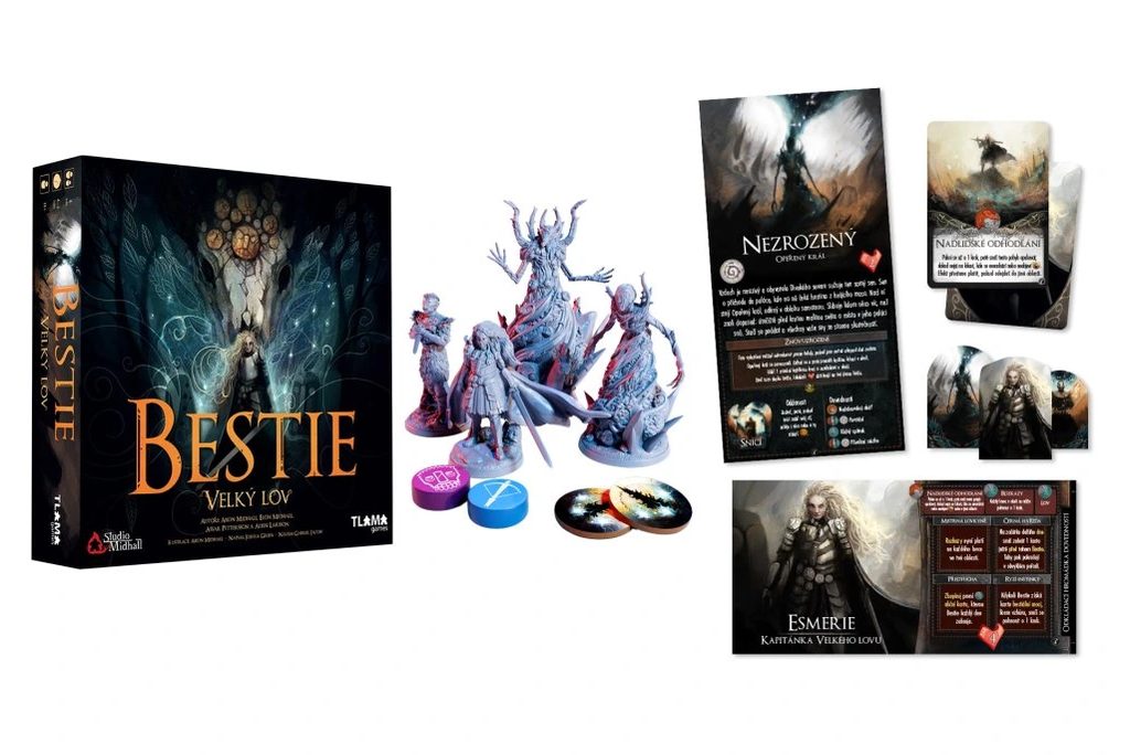 Velký lov přidává dvě nové postavy, které lze přidat do základní hry Bestie nebo je zkombinovat s jakýmkoli jiným rozšířením. Obohaťte hru o Esmerii, Kapitánku Velkého lovu, a Opeřeného krále.
