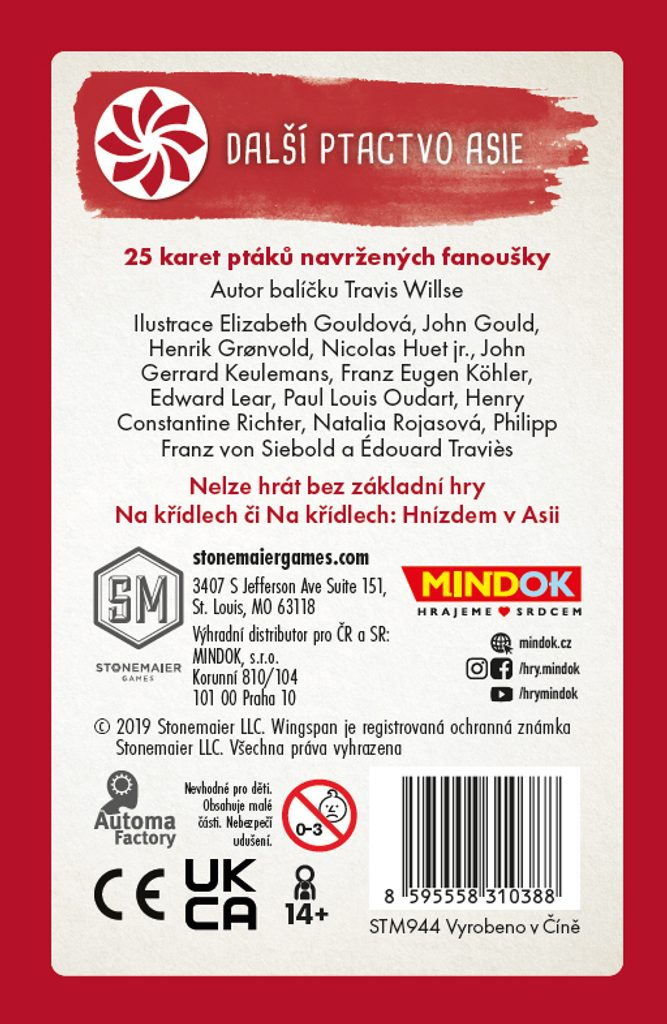 25 nových ptáků pro hru Na křídlech, které najdete primárně v Asii. Tento region sice již byl obsažen v základní hře, karty ptáků jsou ale unikátní.