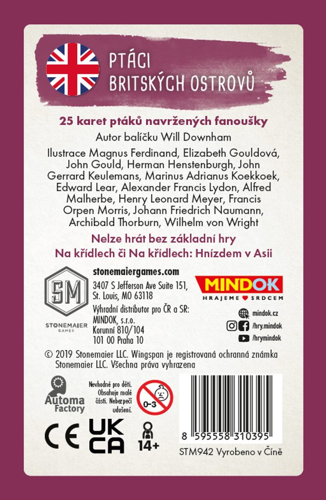 25 nových ptáků pro hru Na křídlech, které najdete primárně ve Velké Británii. Tento region sice již byl obsažen v základní hře, karty ptáků jsou ale unikátní.