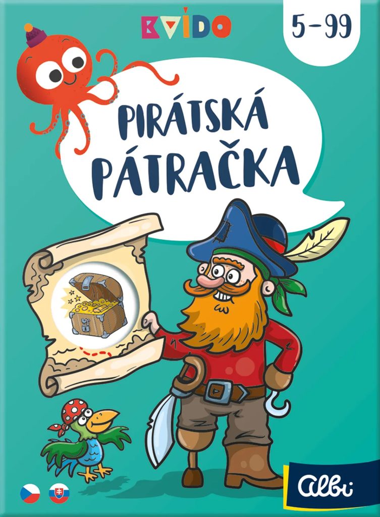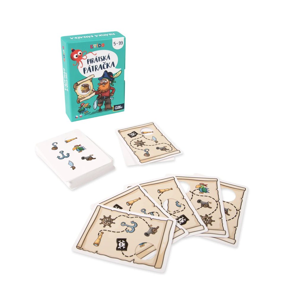 Pirátská pátračka je zábavná karetní postřehová hra pro děti. Vydejte se na dobrodružnou výpravu s pirátským dalekohledem a objevte skrytý poklad na mapě. Stačí správně přiložit jednu kartu na druhou a podívat se skrz otvor – jen tak odhalíte, kde se ukrývá hledaný pirátský předmět.