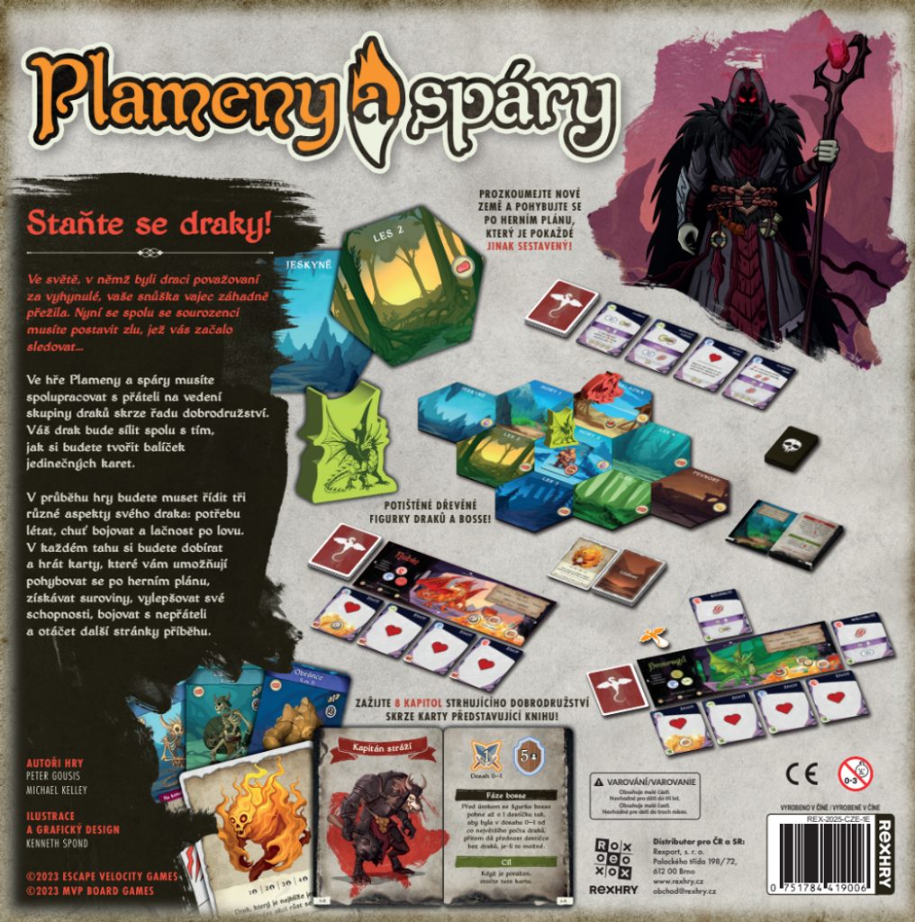 Plameny a spáry jsou fantasy hra, ve které hráči společně vedou skupinku draků skrze řadu dobrodružství. Se svými draky budou létat, získávat suroviny, lovit i bojovat. A postupně si je budou i vylepšovat. Budou také otáčet další stránky příběhu, kterým budou postupně procházet. Hra obsahuje celkem osm různorodých kapitol plných dobrodružství.