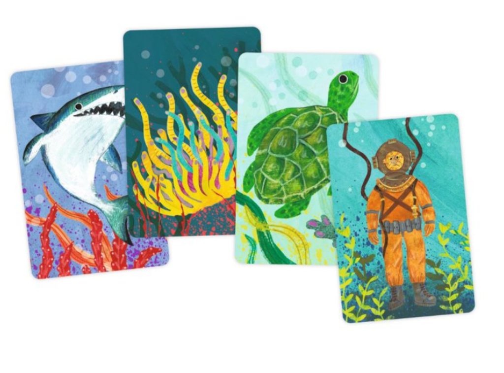 - 48 karet (11 karet potápěče, 12 karet žraloků, 13 karet sasanky, 12 karet želvy)