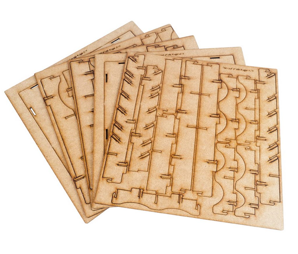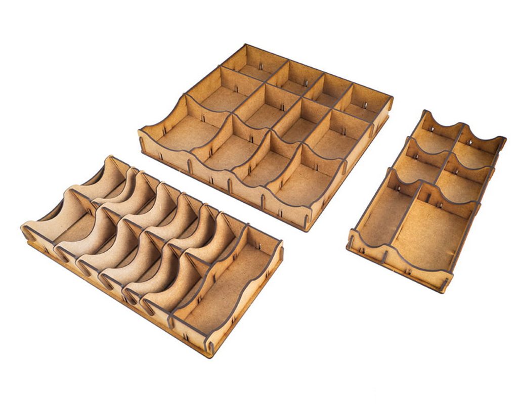 Insert je vyroben z HDF desky. Vejde se do krabice o rozměrech 29,5 x 29,5 x 13,3cm.