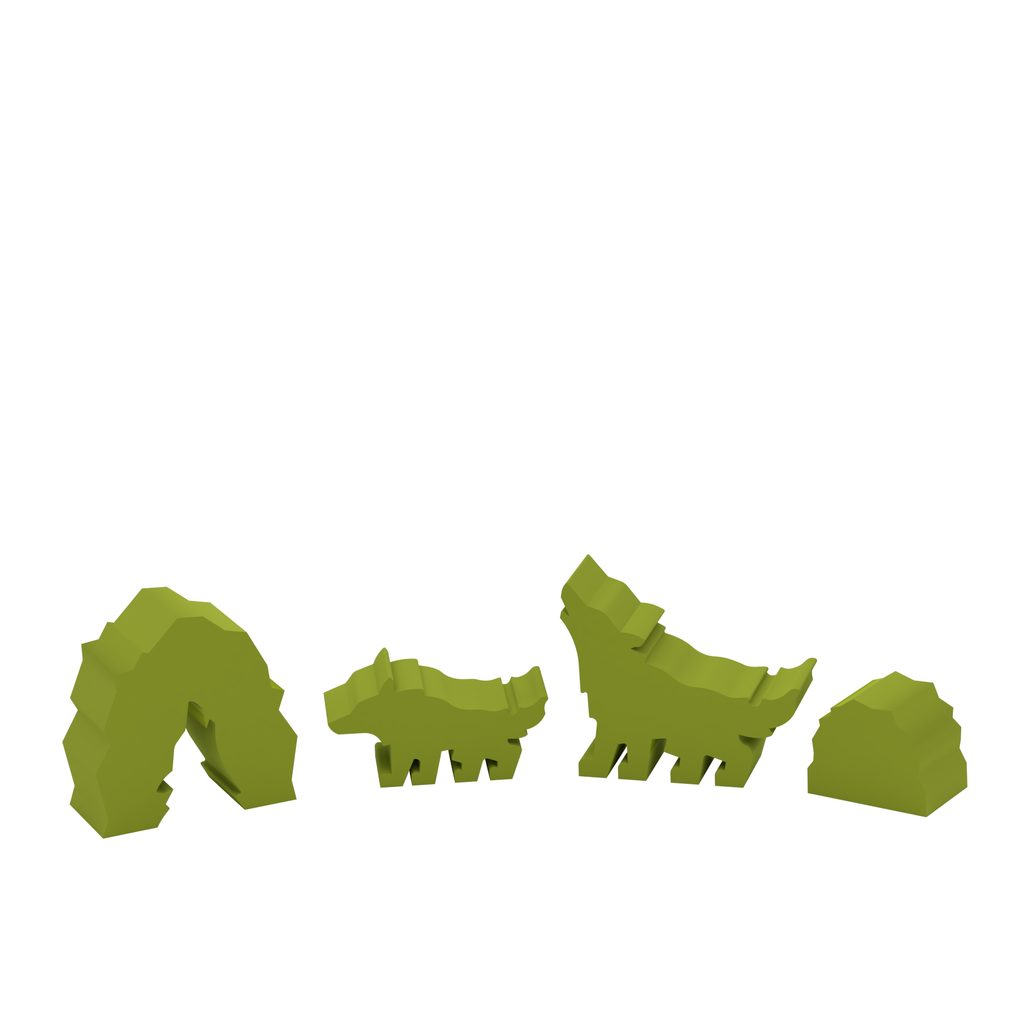 Abyste mohli provést akci, musíte otočit destičku terénu - destičky jsou oboustranné a konkétní akce lze provést na konkrétních terénech. Znamená to tedy, že akce, kterou provedete v jednom kole, určí, na jaké typy terénu můžete v příštím kole. Jak budete rozšiřovat kontrolu své smečky nad jednotlivými oblastmi, budete zlepšovat její atributy a následně moci provádět agresivnější akce.